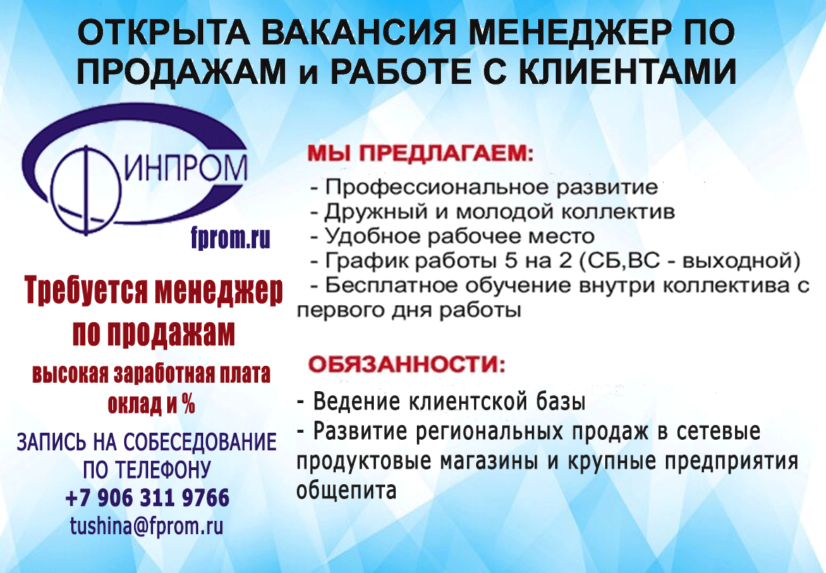 Менеджер по развитию региональных продаж оборудования в сетевые продуктовые магазины и крупные предприятия общепита!